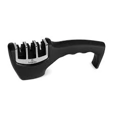 A Berlinger Haus Black Silver Collection késélező műanyag házzal készült. Puha tapintású, ergonomikus fogó, amely jobb- és balkezes használatra egyaránt alkalmas. Csúszásmentes talp gondoskodik a biztonságos használatról. A három lépcsős rendszer biztosítja, hogy a megfelelő anyagú követ rendeljük mindegyik feladathoz:A gyémántkő tökéletes a sérült pengék élezés előtti javítására és a pengék kiegyenesítésére. A wolfram gondoskodik a penge élezéséről és az él optimális formájának helyreállításáról. A befejező fázisban a kerámia kő polírozza a pengét és elsimítja az esetleges egyenetlenségeket. Méret: 20×5,5 cm, magasság: 7,5 cm