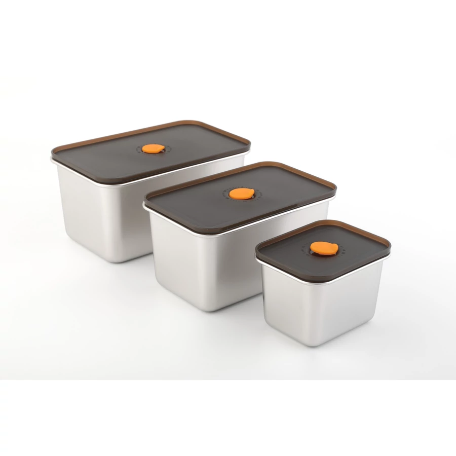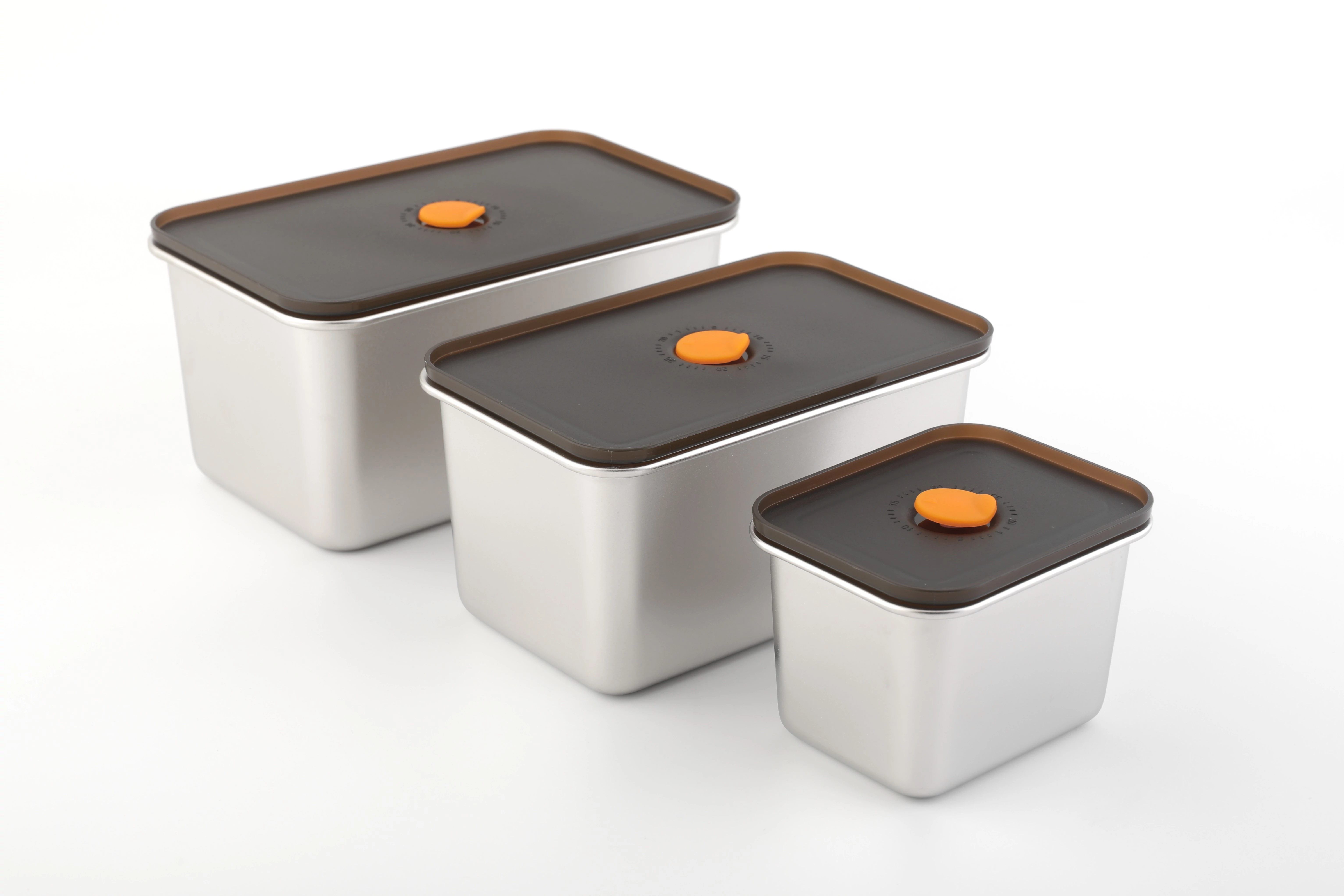 Carl Schmidt Sohn KOCH SYSTEME rozsdamentes acél ételtartó szett.Ételtartó doboz anyaga: SUS304 rozsdamentes acél, fedele: BPA-mentes PP szilikon, tömítéssel. Kivitel: szálcsiszolt belső, polírozott külső. Jellemzők: egymásra helyezhetőek a dobozok, szivárgásmentes, élelmiszeripari minőségűek.