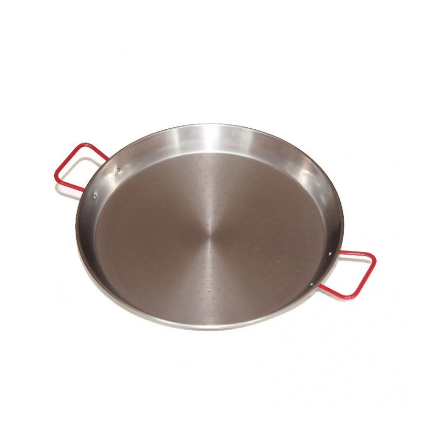 Paella sütőtál 22 cm.Anyaga: polírozott acél, Mérete: 23 cm átmérőjű felül peremmel, 22 cm átmérőjű felül perem nélkül, 17,5 cm átmérőjű alul, 3,5 cm magas, 33,4 cm széles fülekkel együtt, 3,5 cm magas a fülénél. Súlya: 350 g, Használható: gáz-, kerámialapos -, elektromos tűzhelyen. Tisztítása: Semleges folyékony mosogatószerrel mossa el! Kerülje a karcosodást okozó szerek és eszközök használatát! Mosogatógépben nem mosható. Ne áztassa! Ajánljuk: húsok, zöldségek sütéséhez. Figyelem! Főzéskor fa vagy műanyag, illetve szilikon eszközöket használjon, a fém eszközök megsérthetik a felületét!