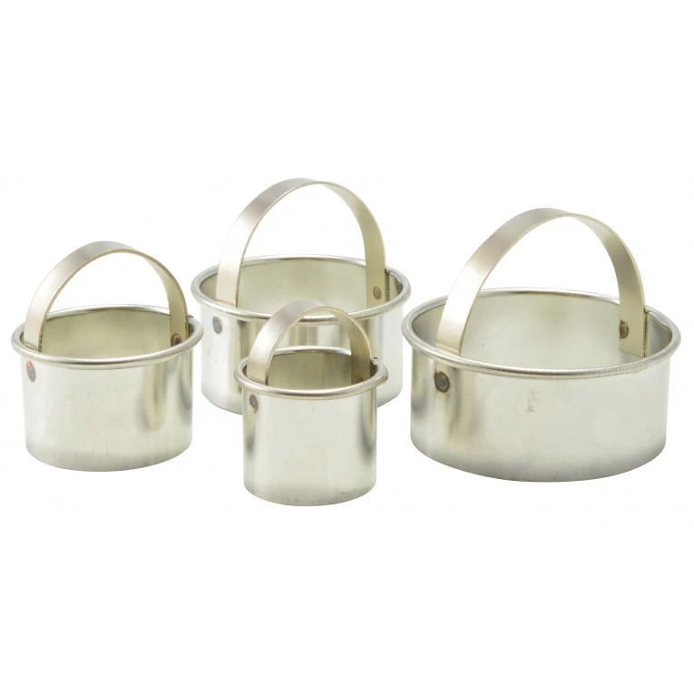 Perfect Home pogácsaszaggató 4 db. Anyaga: bádog. Tartalma: 4 db különböző méretű kiszúró forma. Mérete: 3,5-4,4-5-6 cm átmérőjű; Súlya: 60 g / csomag. Tisztítása: semleges folyékony mosogatószerrel mossa el! Kerülje a karcosodást okozó szerek és eszközök használatát!