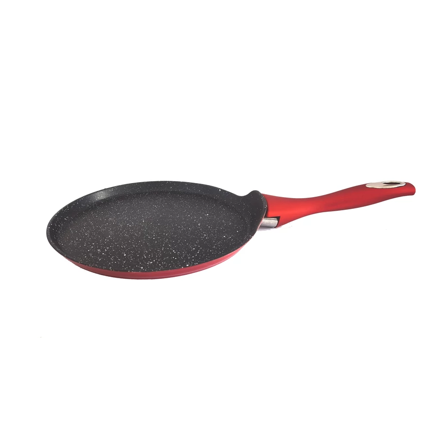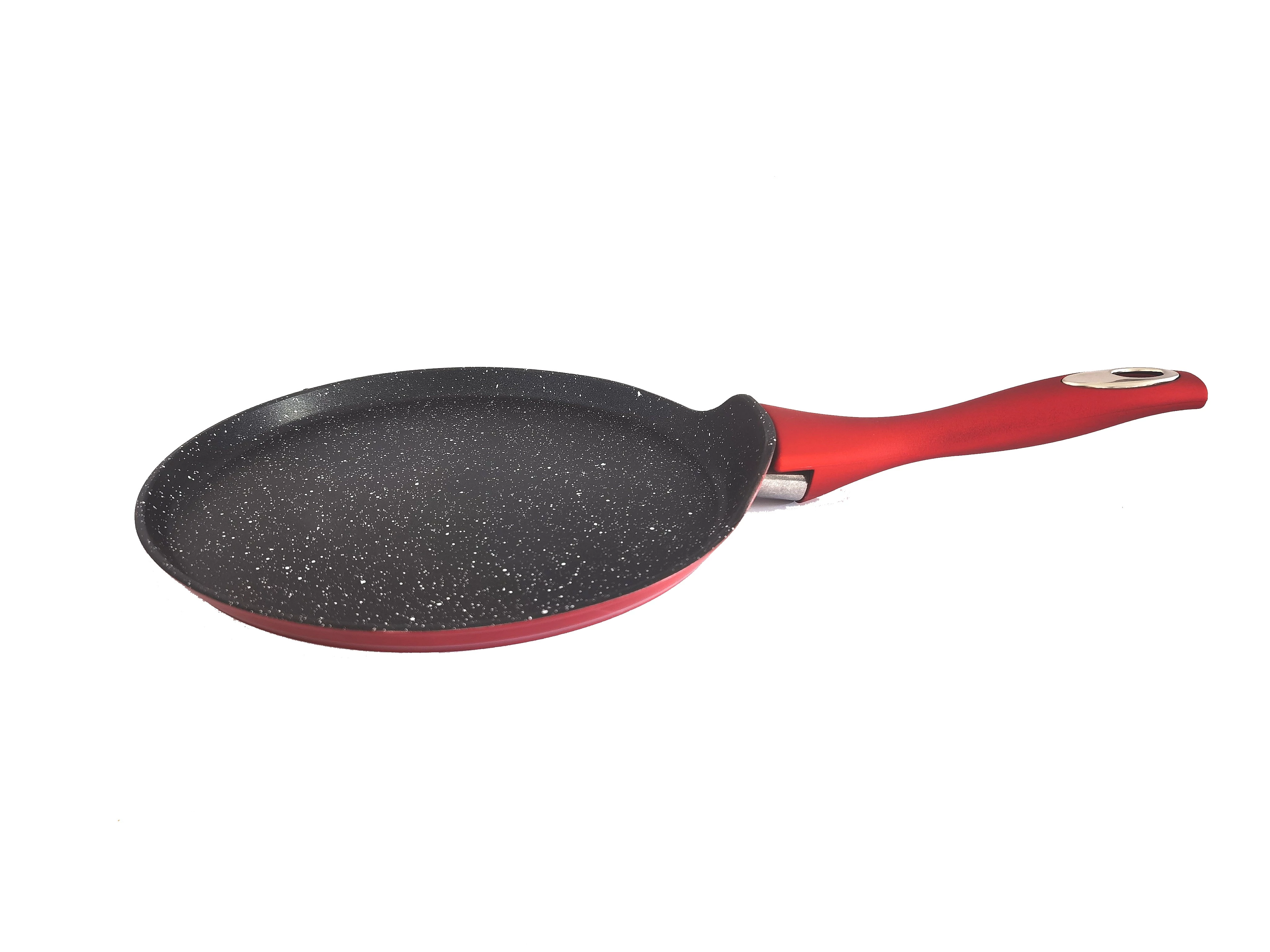 Silver Royal Red Metallic márvány bevonatos palacsintasütő 24x2 cm. Az edény alumíniumból készült kiváló hővezető. Háromrétegű tapadásmentes márványbevonattal, tartós karcolás gátló lakkal bevonva. Indukciós talp, indukciós főzőlapra alkalmas. Hatékonyan osztja el a hőt ezáltal energiát takarítunk meg.. Hozzájárul az egészséges életmódhoz mivel kevesebb zsír és olaj szükséges a minőségi ételek előállításához. Kerülje a karcosodást okozó szerek és eszközök használatát. Mosogatógépben mosható , fontos hogy azonnal töröljük szárazra az edényt a foltok megakadályozása érdekében. Minden fajta hőforráson használható. PFOA mentes. Miért hasznos ez az információ? A korábbi tapadásmentes bevonatoknál előfordult, hogy rákkeltő összetevőkből álltak, azaz tartalmaztak PFOA-át, azaz perfluoroktánsavat. A gyártás folyamán nem használnak mérgező anyagokat.