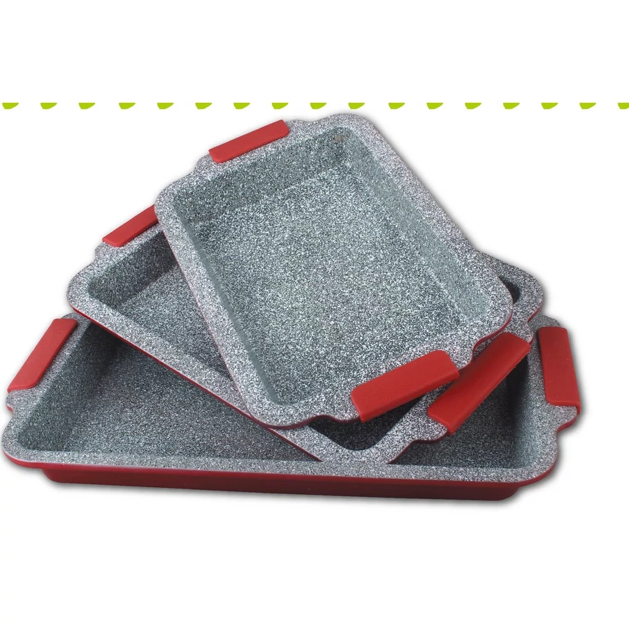Berghome Line tepsi szett kerámia/gránit tapadásmentes bevonattal 3 részes, szilikon fogantyúval, 36, 40, 46 cm, bordó